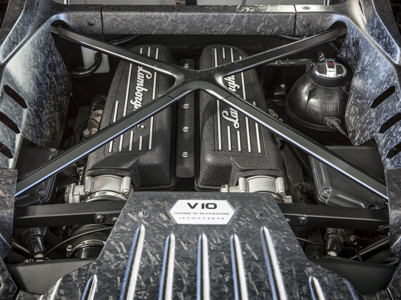 En lo referente a las especificaciones del motor, el Lamborghini Huracán presentaba el mismo motor V10 de aspiración natural de 5-204 centímetros cúbicos (5,2 Litros) que presentaba su predecesor, el Gallardo. El peso total del coche es de 1.422 kg con una relación peso a potencia de 2,33 kg/CV y cuenta con tracción integral. Su velocidad máxima era de 325 km/h (202 mph). Esta fue la cantidad estimada por Lamborghini, sin embargo, si se cumplían ciertos factores, la potencia podría sobrepasar algo más dicha cifra. La aceleración era de 0 a 100 km/h en tan solo 3,2 segundos y de 0 a 200 km/h en 9,9 segundos.