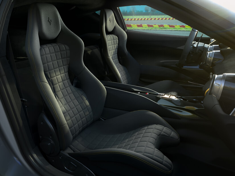 La arquitectura interior sigue siendo bastante fiel a la del 812 Superfast, conservando salpicadero, volúmenes, y superficies, incluido el característico diseño en forma de diapasón.  Junto con otros elementos del interior, el panel de la puerta se ha rediseñado para reducir el peso y, combinado con la introducción del diseño de la puerta en forma de H en el túnel, trasmitiendo a la cabina un toque más deportivo y moderno que refleja el espíritu racing del automóvil.