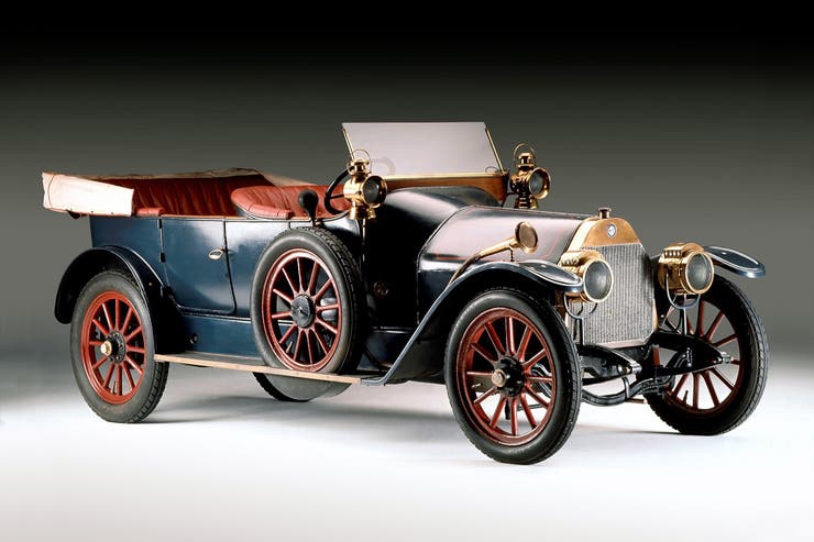 A.L.F.A (Anónima Lombarda Fabbrica Automobili) iniciaba su saga con el 24 HP, que con un motor de 4.1 L y 42 HP de potencia alcanzaba 110 km/h de velocidad y se convertía en un éxito de ventas, mientras que en su debut deportivo estuvo a punto de ganar la Targa Florio. El ingeniero que lo creó, Giuseppe Merosi, fue además quién diseñó el inconfundible escudo de la marca con el “Biscione”, la serpiente que devora a un hombre, combinado con la cruz roja sobre fondo blanco, emblema de la ciudad de Milán.