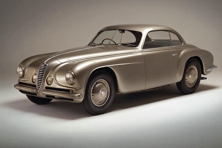 Tras el desastre que supuso la II Guerra Mundial, la empresa renacía una vez más en 1945 con el Alfa 6C 2500 Freccia d’Oro, un diseño con la parrilla vertical y casi triangular, incluyendo el escudo, unida a las tomas de aire horizontales laterales.