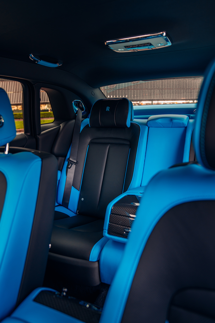Lanzado a finales de 2021, el Black Badge Ghost es el automóvil Black Badge más puro y tecnológicamente avanzado de la marca hasta la fecha. Se ha elegido un acabado exterior en azul Galileo y negro para dar a conocer la dramática intención de este encargo del Black Badge Ghost. Las llamativas pinzas de freno rojas y la franja central de las ruedas en azul Galileo resuelven con seguridad la estética exterior. El tema del azul se traslada al interior, con los ribetes de los asientos y el cuero interior a medida en azul Galileo.