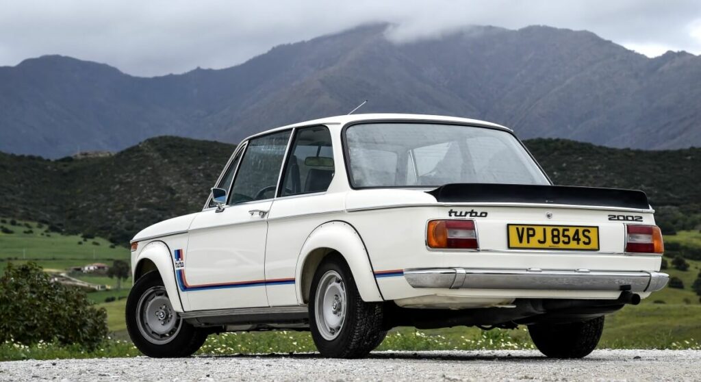 La primera vez que se vio esa palabra en un coche de producción fue en la década de los 70, en el faldón delantero de un pequeño BMW, que además lo tenía escrito de forma que se pudiera leer a la perfección a través del espejo retrovisor (como las ambulancias). Un pequeño BMW que además fue un éxito de ventas en sus versiones normales: el BMW 2002 Turbo.