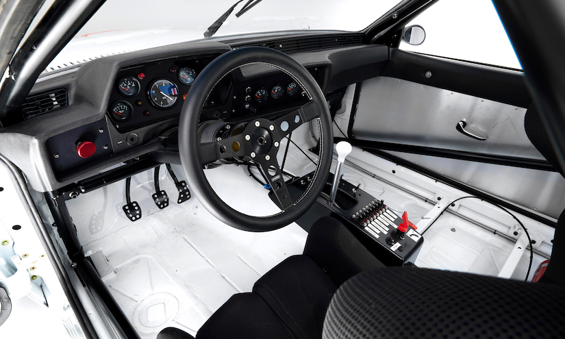 Bajo el capó había, como decíamos, un seis cilindros de 3.430 centímetros cúbicos con alrededor de 400 CV, unido a un cambio Getrag Sport de cinco relaciones. El habitáculo estaba totalmente vacío, a excepción de el asiento del conductor y poco más. Lo que llamaba poderosamente la atención era la carrocería, notablemente ensanchada y con elementos aerodinámicos de gran tamaño en el frontal y sobre la tapa del maletero.