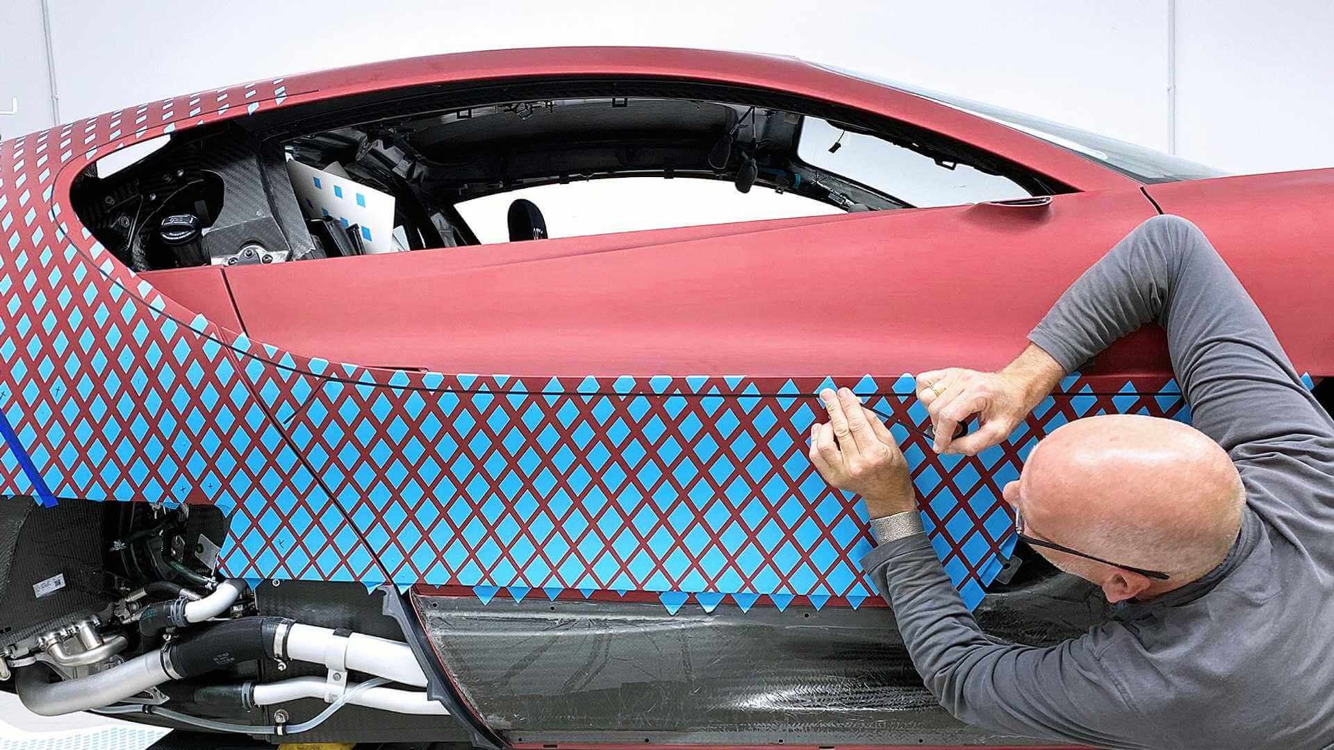 A comienzos de 2020, el equipo de Bugatti pasó innumerables horas simplemente probando este proceso sobre un vehículo de prueba hasta que el procedimiento a seguir. “Cada maniobra tenía que ser exactamente correcta porque únicamente disponíamos de una oportunidad para ejecutarla sobre el coche del cliente, y esa tenía que ser perfecta”, comenta Dirk Hinze, experto en personalización de superficies en Bugatti.