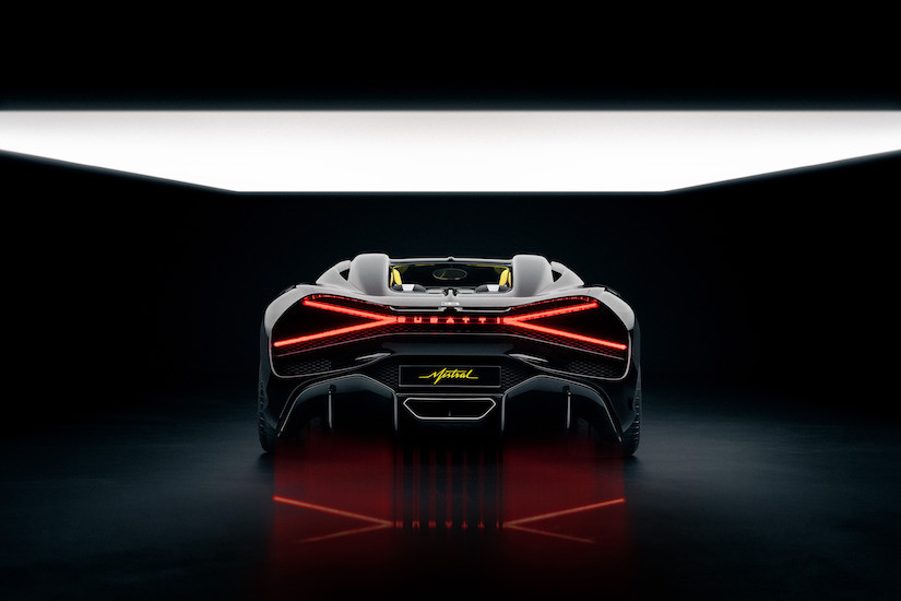 Esta obsesión tanto por la forma como por la función de los diseñadores e ingenieros de la marca también se aprecia en el peculiar diseño en “X” que adopta la firma lumínica trasera y sus ópticas, cuya función no sólo es la de iluminar el coche y facilitar la percepción e identificación del mismo por otros usuarios de la vía en situaciones de visibilidad reducida, también se encargan de ventilar los enfriadores de aceite dispuestos en los laterales del coche gracias a la apertura de unos conductos especiales que conectan la superficie de los pilotos traseros con los radiadores. Aun así, su peculiar diseño en forma de “X” tampoco es nuevo dentro de la gama de Bugatti, dado que ya se pudo contemplar una solución semejante en el prototipo que prefiguraba en el año 2020 el Bugatti Bolide (su llegada al mercado se espera para 2024) lo que contribuye a que podamos pensar que se trata de una funcional solución de estilo que la marca podría adoptar de cara a sus futuros modelos y que el Mistral parece anticipar.