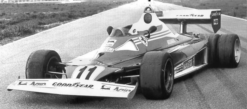 La idea detrás del proyecto de Mauro Forghieri, quien recientemente falleció a los 87 años, fue probablemente la reducción de la resistencia aerodinámica total, con neumáticos delanteros en la parte trasera en lugar de las ruedas traseras de tamaño normal, que eran enormes a mediados de los 70. Otra teoría podría ser que Ferrari trató de contrarrestar la deformación de los enormes neumáticos traseros en las curvas. Tener dos juegos de neumáticos delanteros en la parte trasera daría una solución más rígida. Al mismo tiempo, Ferrari probó una suspensión De Dion con el mismo objetivo.