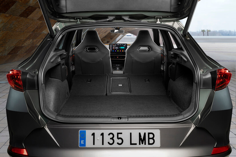 Las dimensiones del Cupra Formentor e-HYBRID son de 4.450 mm de largo, 1.839 mm de ancho y 1.510 mm de alto. Este último dato es clave, pues es el responsable de la excelente altura disponible para la cabeza. Por su parte, la distancia entre ejes de 2.680 mm se traduce en un importante espacio para las piernas de los ocupantes traseros. El maletero ofrece una capacidad de 345 litros y su depósito de combustible es de 40 litros.
