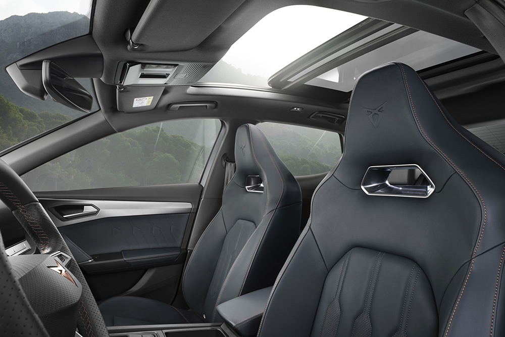 El nuevo volante incorpora el botón de arranque del motor y el botón de selección del modo Cupra. Además, se incluye un botón «ESP off» en la consola central que refuerza aún más su espíritu deportivo. El volante Cupra, un guiño a la consanguineidad con las carreras, hace que nos sintamos más conectados con el vehículo. Las levas del cambio son de gran tamaño, y los botones multifunción se suman a la sensación de alta tecnología y funcionalidad, sin necesidad de apartar las manos del mismo, ni la mirada de la carretera.