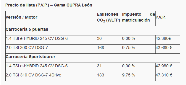 Cupra, acaba de anunciar el inicio de la comercialización de dos nuevas y atractivas versiones del León, su modelo compacto más popular. Se trata de las nuevas 2.0 TSI DSG-7 de 300 CV y 2.0 TSI DSG-7 4Drive de 310 CV, la primera sobre la base de carrocería cinco puertas y la segunda sobre la variante de carrocería SportTourer, que en ambos casos entregan 400 Nm de par máximo.