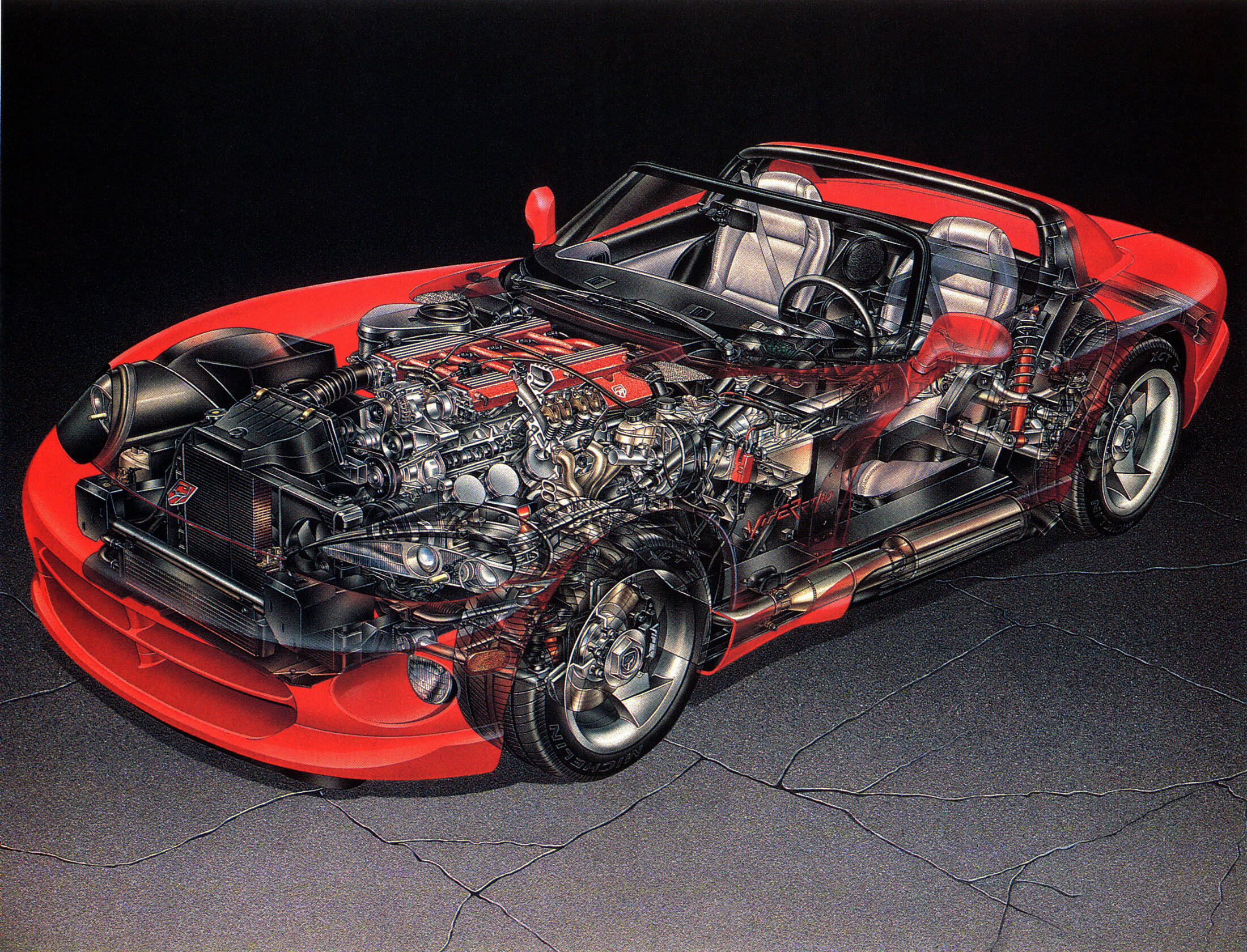 El Dodge Viper (Chrysler Viper en algunos mercados) comenzó su andadura en 1988, cuando Bob Lutz, director del Grupo Chrysler por aquellos años y Tom Gale, el jefe del departamento de diseño, se propusieron dar vida a un deportivo que recuperase el espíritu del Shelby Cobra. Básicamente, querían hacer un biplaza de poca tara en báscula, animado por un enorme V8. Una mezcla entre el típico deportivo británico, pequeño y ligero, y un muscle car yankee, con potencia bruta procedente de un motor con mucho desplazamiento.