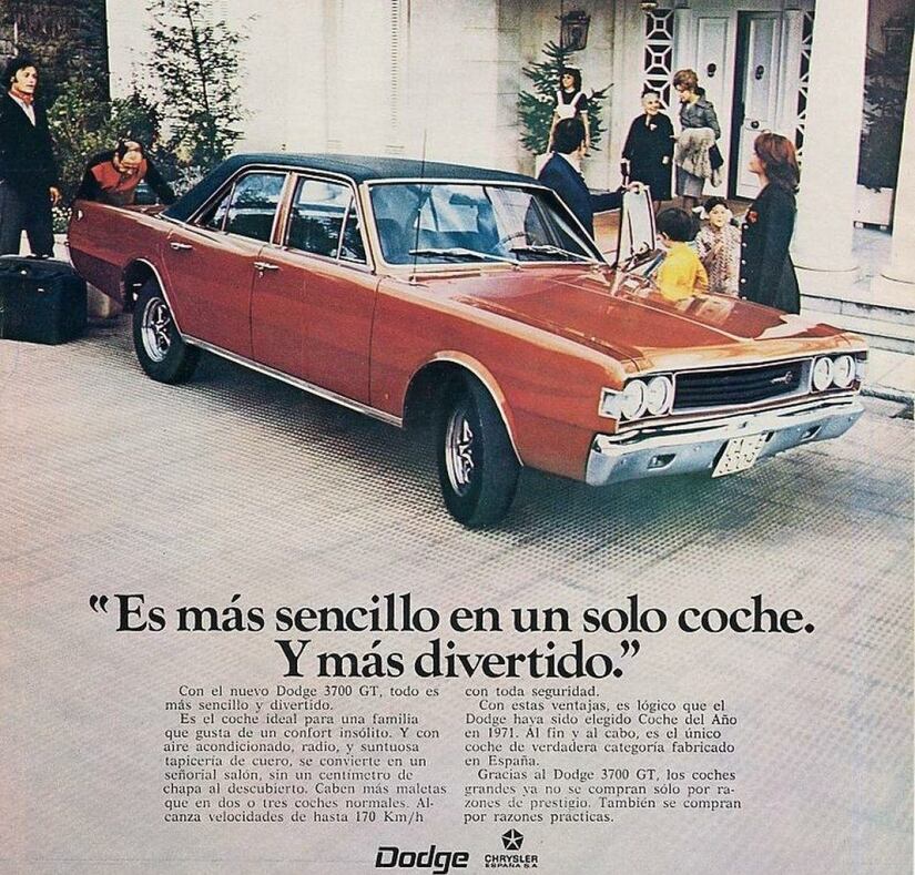Fue entonces cuando apareció el Dodge 3700 GT, un coche casi nuevo, porque así podían aprovecharse de las regulaciones y traer todos los elementos para su fabración desde Estados Unidos. Mecánicamente era igual al Dart, pero contaba con dirección asistida y un diseño totalmente propio, sin réplica en Estados Unidos, como si ocurría con el Dart que fabricó Barreiros. El más popular fue el Dodge 3700 GT, que contaba con un cambio manual de cuatro relaciones y un acabado interior más elegante y lujoso. Tuvo más éxito que el Dart y Chrysler fue muy cuidadosa, con unas previsiones mucho menores en cuanto a ventas. Incluso llegó a ser “Coche del año 1971”.