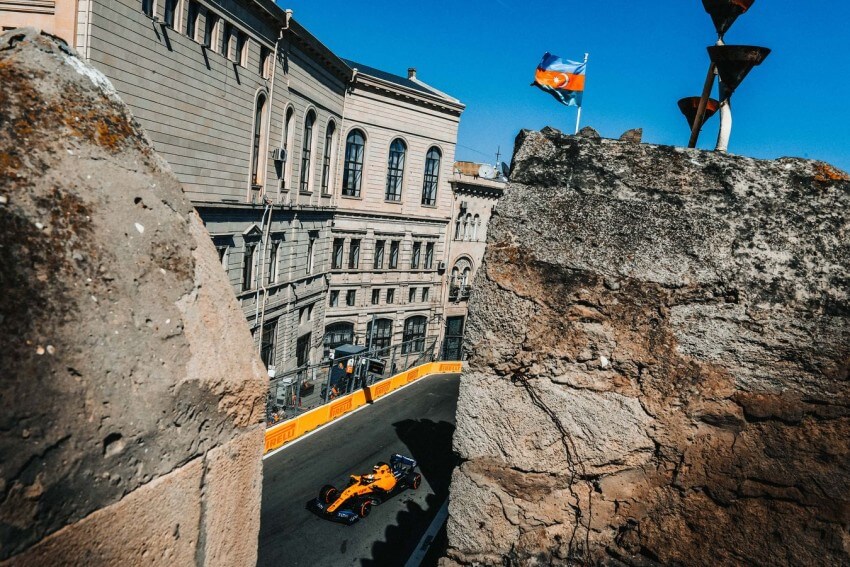 Aunque el primer Gran Premio de Azerbaiyán se haya disputado en 2017, el circuito de Bakú recibió al gran circo por primera vez en 2016, en una carrera denominada “Gran Premio de Europa”. Es una pista urbana diseñada por Hermann Tilke de seis kilómetros de longitud que cuenta con 20 curvas y grandes rectas en la que los motores más potentes sacarán ventaja sobre el resto. Las velocidades máximas alcanzadas han superado los 330 km/h. Serán 306 km totales de carrera en los que la tracción y la velocidad punta de los coches son puntos claves, junto con los frenos.