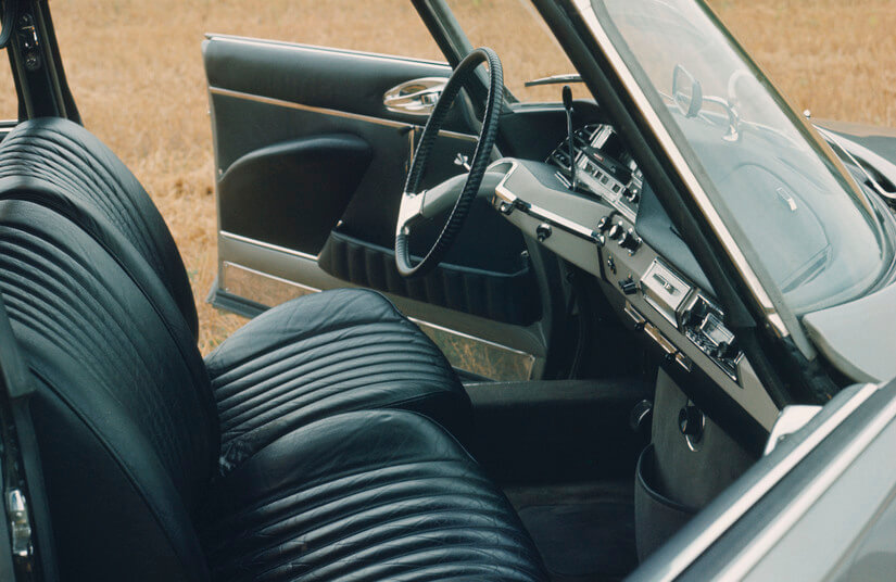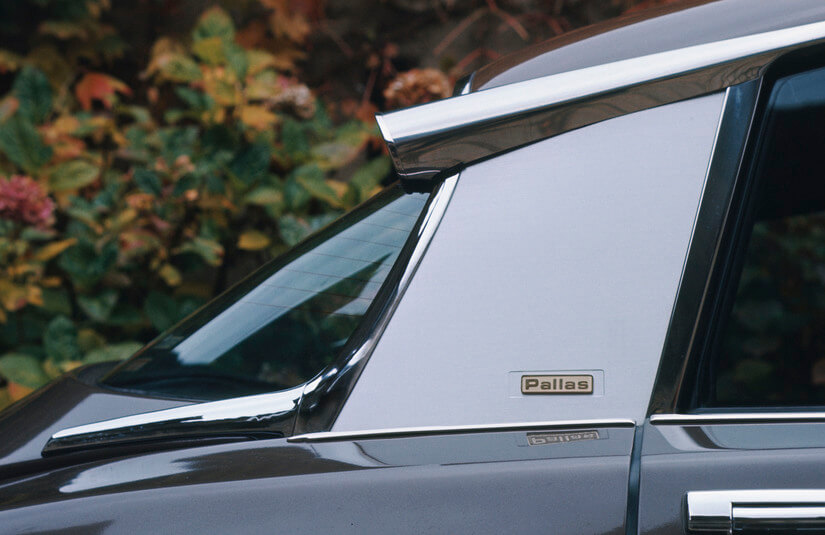 El nuevo acabado del DS recibió un nombre que se haría muy popular: Pallas. Con una referencia clara a la reina de las diosas: Palas Atenea, diosa de la sabiduría y del equilibrio. Equilibrio y sabiduría llevaron precisamente al fabricante a incorporar al DS19 Pallas discretos hilos de cromo, molduras de goma insertadas en perfiles de acero inoxidable (espléndidamente integrados con los catadióptricos traseros), detalles en acero satinado en los paneles laterales y, sobre todo, interiores donde los revestimientos en cuero natural (o en tejido) no dejaban a la vista ni un milímetro del acero de la carrocería, envolviendo a los ocupantes como en un suave abrazo.