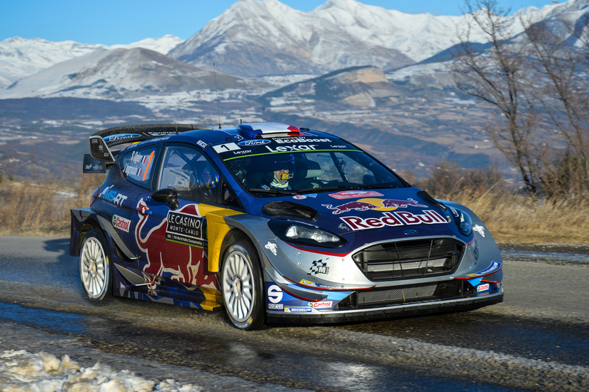 Sébastien Ogier con el Ford Fiesta actualizado durante el Rallye de Montecarlo de 2017