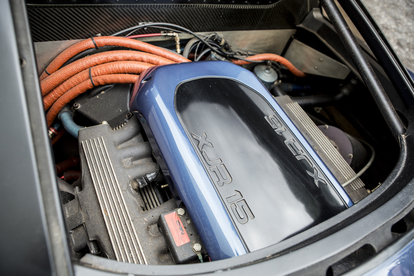 Por detrás del habitáculo, un V12 de 5.993 centímetros cúbicos daba vida al XJR-15. Era atmosférico y rendía 450 CV, encargados de mover solamente 1.050 kilos mediante un cambio manual de cinco relaciones. No es de extrañar que completara el 0 a 100 km/h en 3,9 segundos y que superara los 300 km/h. Tampoco es de extrañar su rendimiento, pues Cosworth se encargó de cosas como el cigüeñal, las bielas y los pitones. La inyección corría a cargo de un sistema secuencial Zytec.