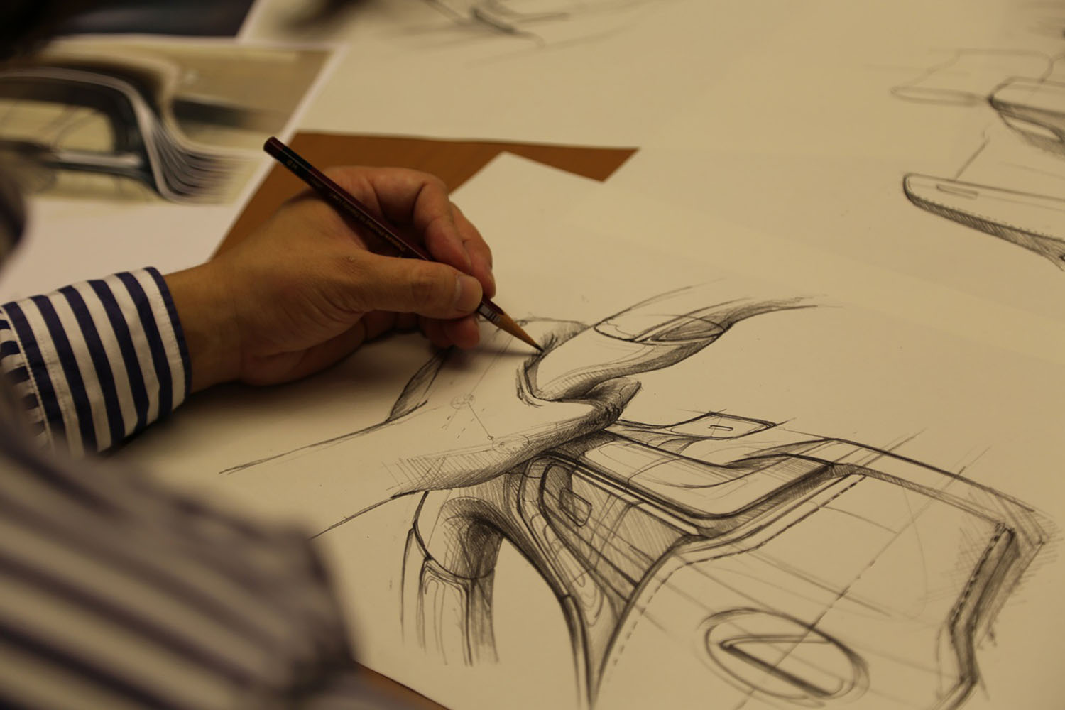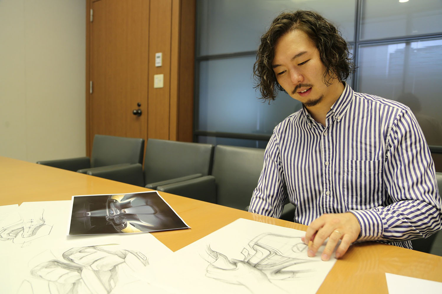 Su atención se centró, y sigue centrándose, en el interior de los automóviles: “Dado que quería crear materiales y objetos que se pudieran tocar, me hice diseñador de interiores. Trabajé en el diseño de componentes para la berlina LS, desde el volante y los asientos hasta el conjunto del vehículo, y después me centré en el desarrollo más avanzado”.