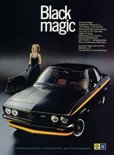 La gama Manta comenzó con el 1.2 de 60 CV en 1972, seguida en noviembre del mismo año por el lujoso Manta Berlinetta. El equipamiento estándar incluía volante deportivo, luneta trasera térmica, faros halógenos, limpiaparabrisas eléctricos y techo de vinilo. Los cinco años de producción se enriquecieron con varios modelos especiales: «Holiday», «Plus», «Swinger» y «Summer Bazar» combinaron especificaciones de nivel superior con precios modestos. El Manta GT / E, impulsado por un motor de 1.9 litros y 105 hp con inyección de combustible Bosch L Jetronic, apareció en 1974. La tendencia hacia el acabado mate en lugar de cromado continuó con el Manta GT / E. El último modelo especial llegó en 1975, poco antes del debut de la Manta B. El «Black Magic» basado en el GT / E era totalmente negro con rayas naranjas en sus costados.