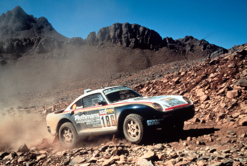 Así, en 1985, Porsche alineó tres unidades del Porsche 959 entre los inscritos para participar en el entonces París-Dakar. Su primera participación no fue algo que se pudiera recordar, pues tan solo lograron tres victorias de etapa. Y eso que entre los pilotos oficiales estaban nada menos que Jackie Ickx y René Metge. Pero Porsche no se dio por vencida y se presentó nuevamente en 1986 con los 959 revisados para la ocasión: suspensiones reforzadas y con 30 centímetros de altura libre al suelo, un motor que perdía 50 CV para asegurar mayor fiabilidad y reducir consumos junto a un sistema de refrigeración más eficiente, así como un depósito de 330 litros.