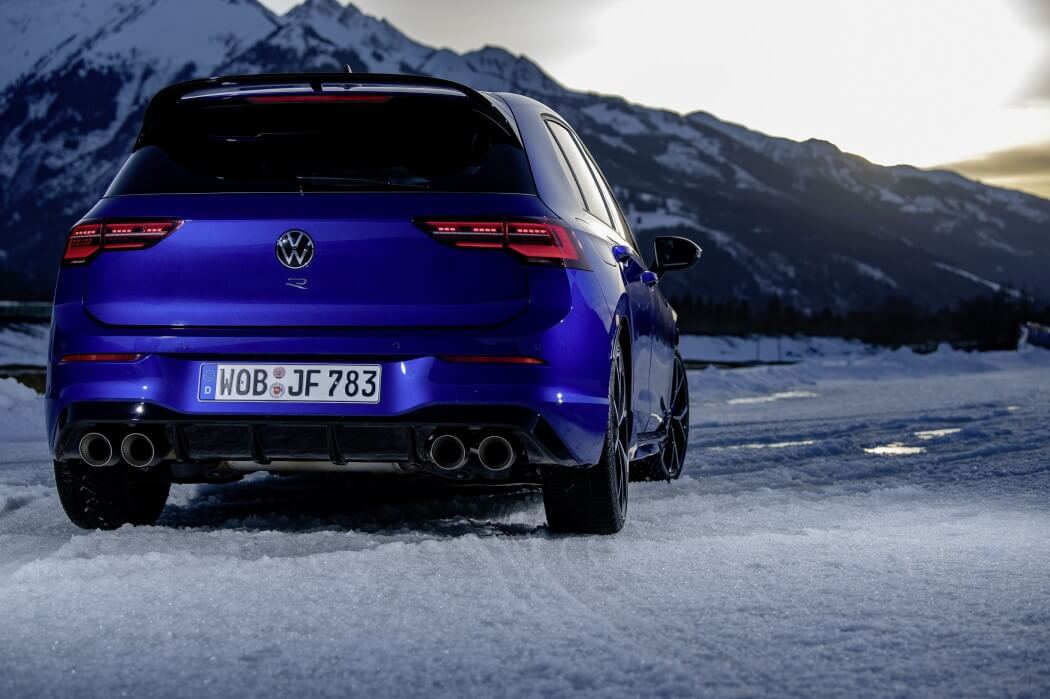 El Golf R también puede pedirse con el Paquete R-Performance opcional, que en este caso incrementa la velocidad punta hasta los 270 km/h. El Paquete R-Performance también incluye un alerón trasero más grande y prominente, para reforzar la carga aerodinámica, llantas de 19 pulgadas de diseño Estoril, y dos perfiles de conducción adicionales: “Special” (modo Nürburgring) y “Drift”. El selector de modo de conducción es rápidamente accesible pulsando ligeramente el botón R del volante.