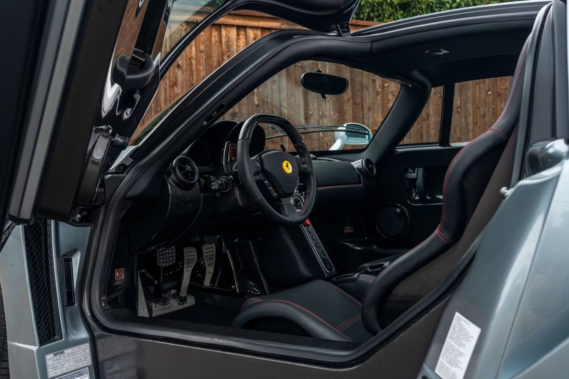 El Enzo Ferrari Grigio Titanio que subastó Mecum Auctions es un claro ejemplo, pues solo marcaba en el odómetro 2.745 millas, unos 4.418 kilómetros. No ha recorrido ni siquiera un kilómetro al año. Tecnología procedente de Fórmula 1, materiales exóticos como la fibra de carbono o el titanio, una aerodinámica espectacularmente trabajada y todo, para acabar en un garaje…