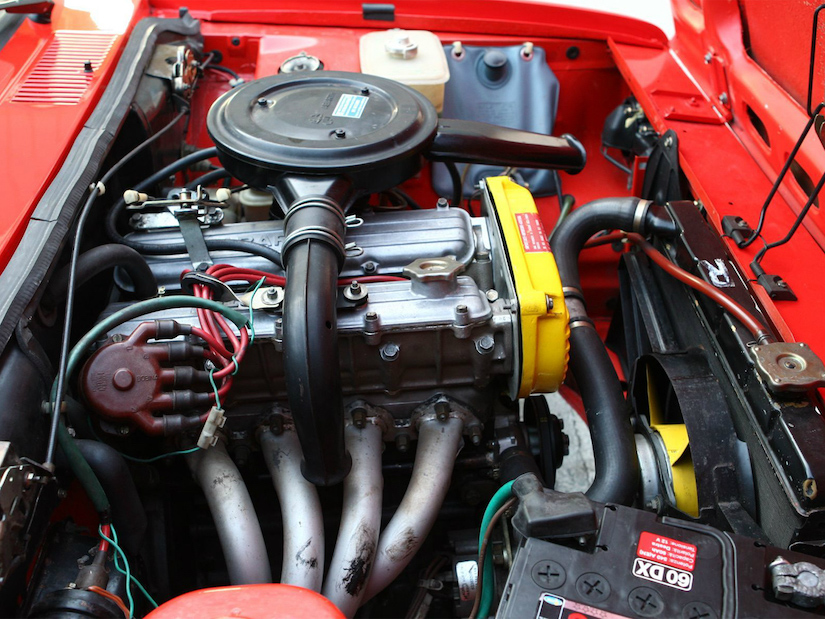 Las versiones de homologación, pues el FIAT 131 Abarth era un coche de homologación, siempre han contado con motores relativamente potentes, pues en competición, las mejoras permitidas por el reglamento lograban aumentar las prestaciones partiendo de ese motor de producción. En el caso del 131 Abarth, el motor era un cuatro cilindros 2.0 litros atmosférico (es decir, sin turbo), que rendía 140 CV gracias a Abarth. Sí, seguramente te parezca una cifra de lo más normal, incluso insulsa para un coche con el aspecto del FIAT 131 Abarth, pero en su momento era una potencia muy buena. Se combinaba con un cambio manual de cinco relaciones, que le permitía presumir de una aceleración de 0 a 100 km/h en 8,8 segundos, así como de una velocidad máxima de 190 km/h. Nuevamente, cifras de lo más normales hoy día, pero en aquellos años, un FIAT 131 rara vez superaba los 175 km/h.
