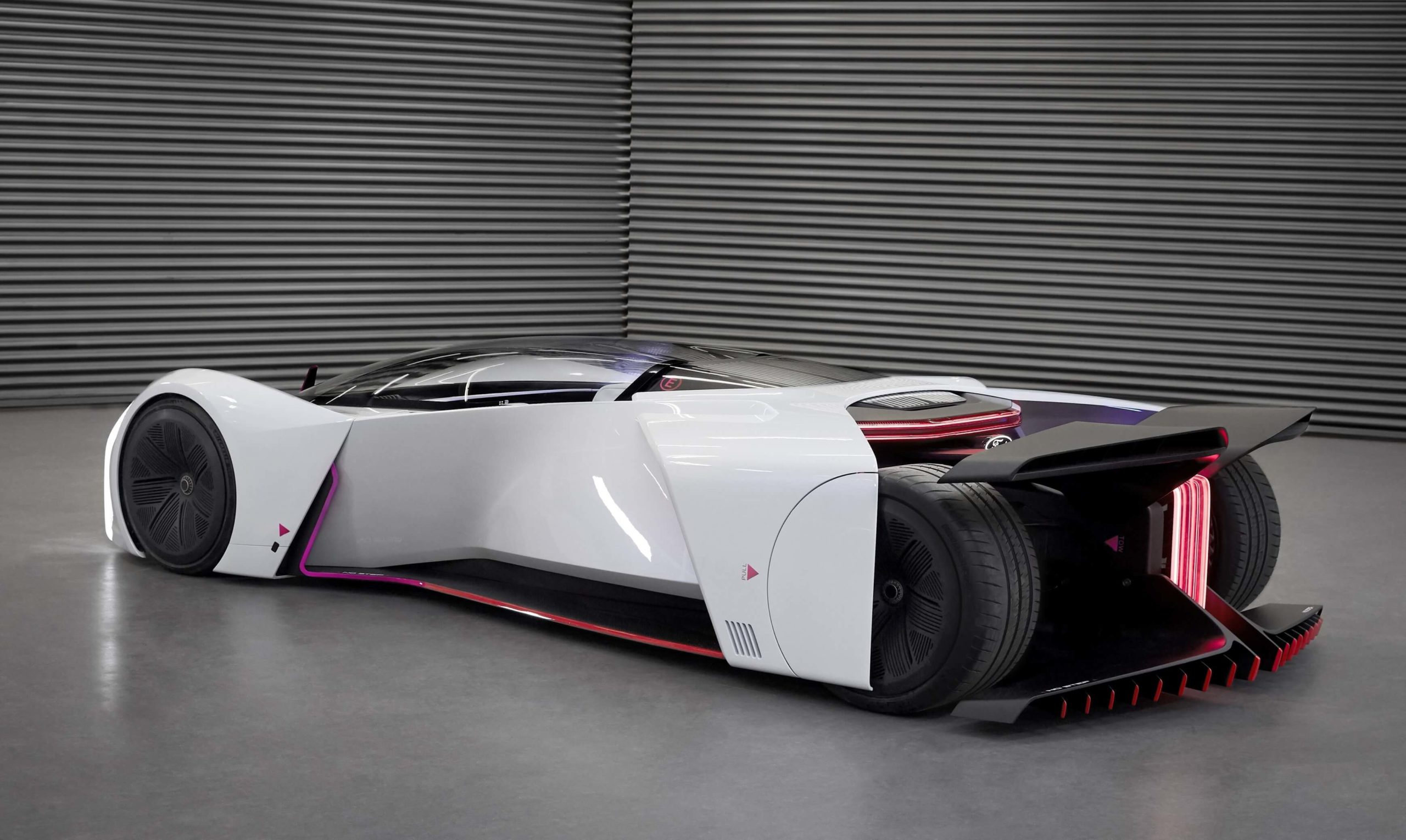 La parte trasera del vehículo queda completamente expuesta a la vista para facilitar los elevados flujos aerodinámicos que la carrocería debe soportar para garantizar la aerodinámica más favorable para obtener el rendimiento adecuado en los circuitos de competición.