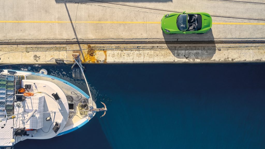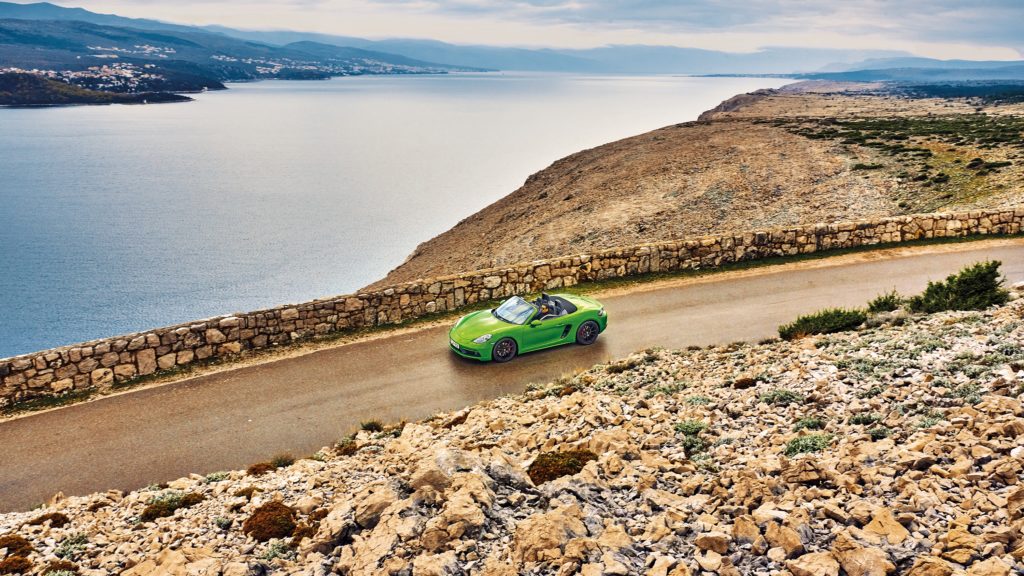 Los dos Porsche se mueven perfectamente en este escenario. El Boxster GTS 4.0 es un rayo de luz entre el bullicio de las calles comerciales. Pero ahora toca salir de la ciudad. En la cercana isla de Krk, el nuevo deportivo con motor central muestra lo que lleva dentro. El Boxster acelera y, en solo 4,5 segundos, el velocímetro marca 100 kilómetros por hora. Podría seguir subiendo la velocidad, pero la carretera, el paisaje y la luz son demasiado majestuosos como para apresurarse.