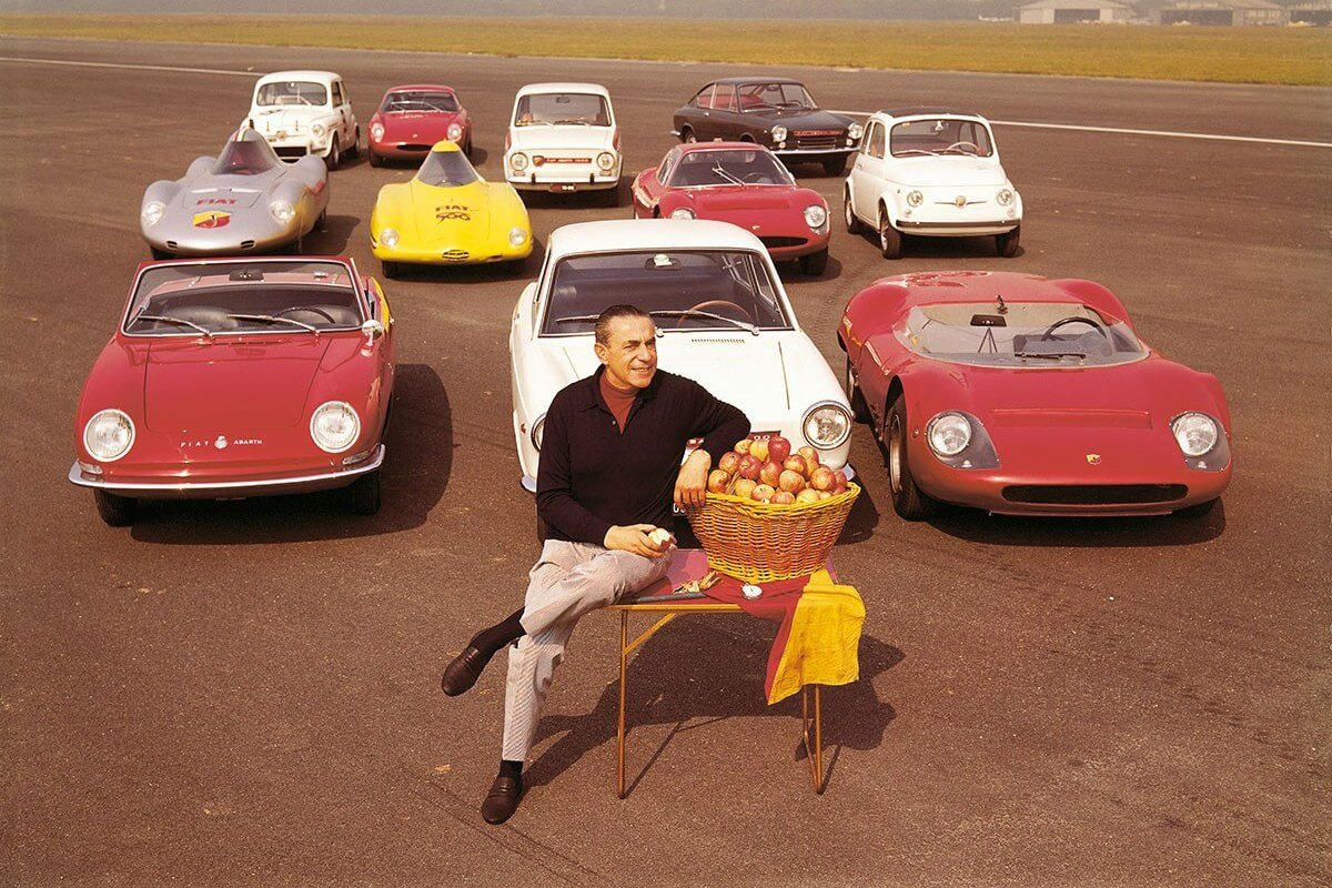 Carlo Abarth delante de alguna de sus muchas creaciones