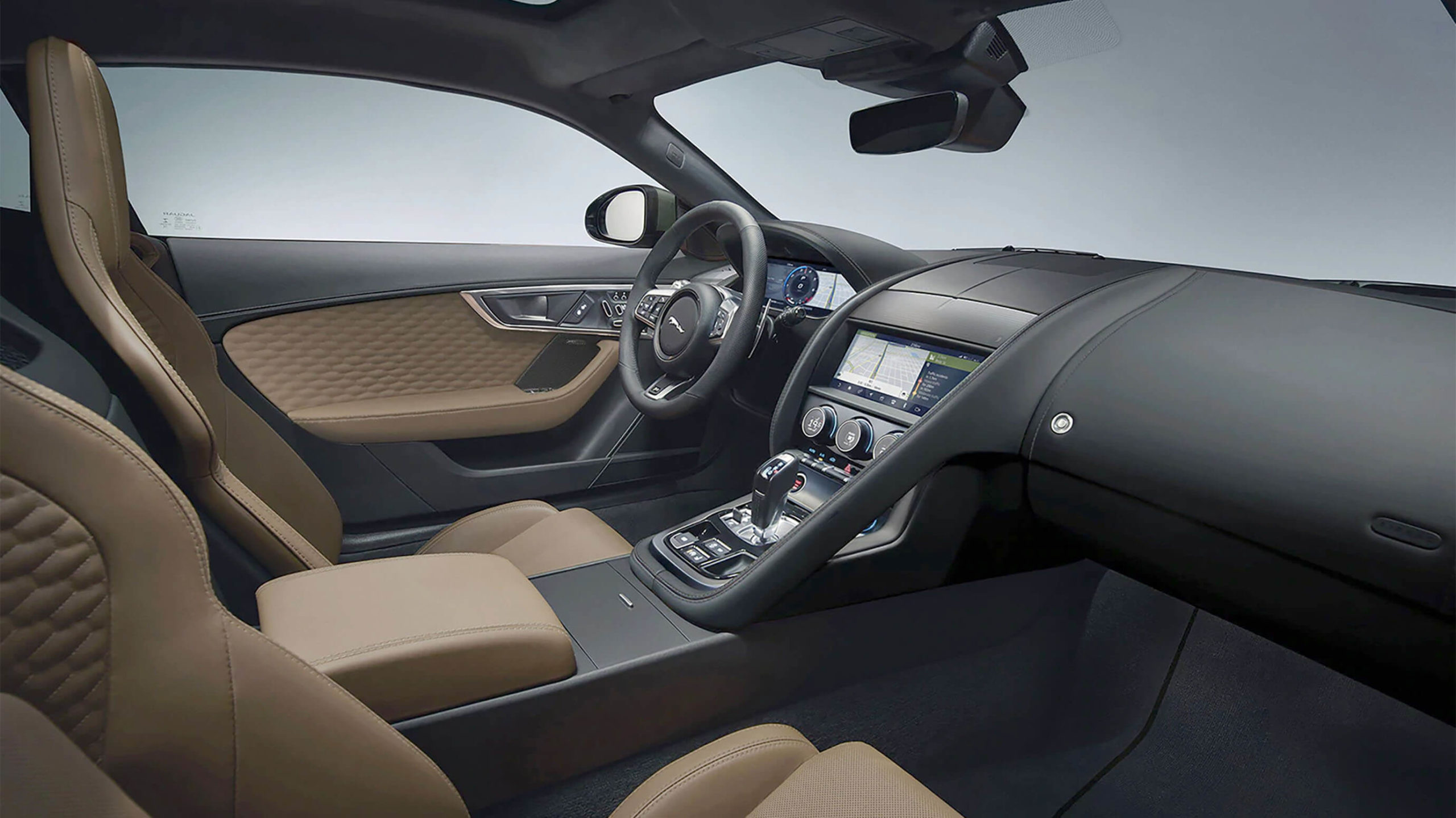 Esta especificación conmemorativa especialmente seleccionada, incluye pintura lisa Sherwood Green, un color original del E-Type que Jaguar no había utilizado en ningún nuevo modelo desde la década de los 60, además de un revestimiento interior en piel bitono Caraway y Ebony Windsor, una combinación que no suele estar disponible en el F-Type.