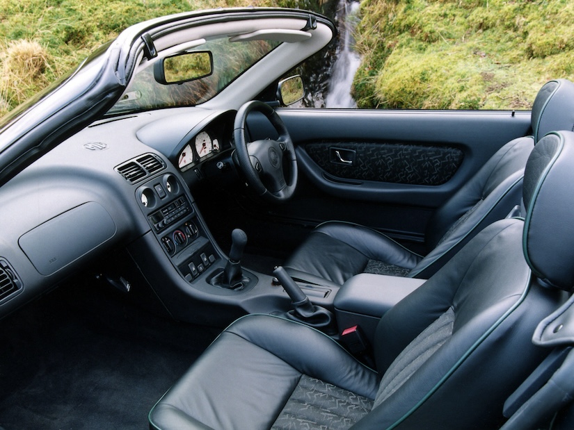 Estéticamente hablando, el MG F recordaba en algunos rasgos al Miata, básicamente porque tenían un tamaño similar y un frontal redondeado, rematado, en el caso del británico, con una trasera más rotunda y deportiva, con dos salidas de escape –una a cada lado– y grandes piloto que le otorgaban personalidad y fuerza. Contaba con gadgets como la suspensión Hydragas, una solución que hizo que el comportamiento del MG F fuera de los mejores por efectividad y comodidad, pero que se dejó de usar porque las esferas dejaron de fabricarse y se tuvo que recurrir a una suspensión convencional, aunque más fiable y económica.