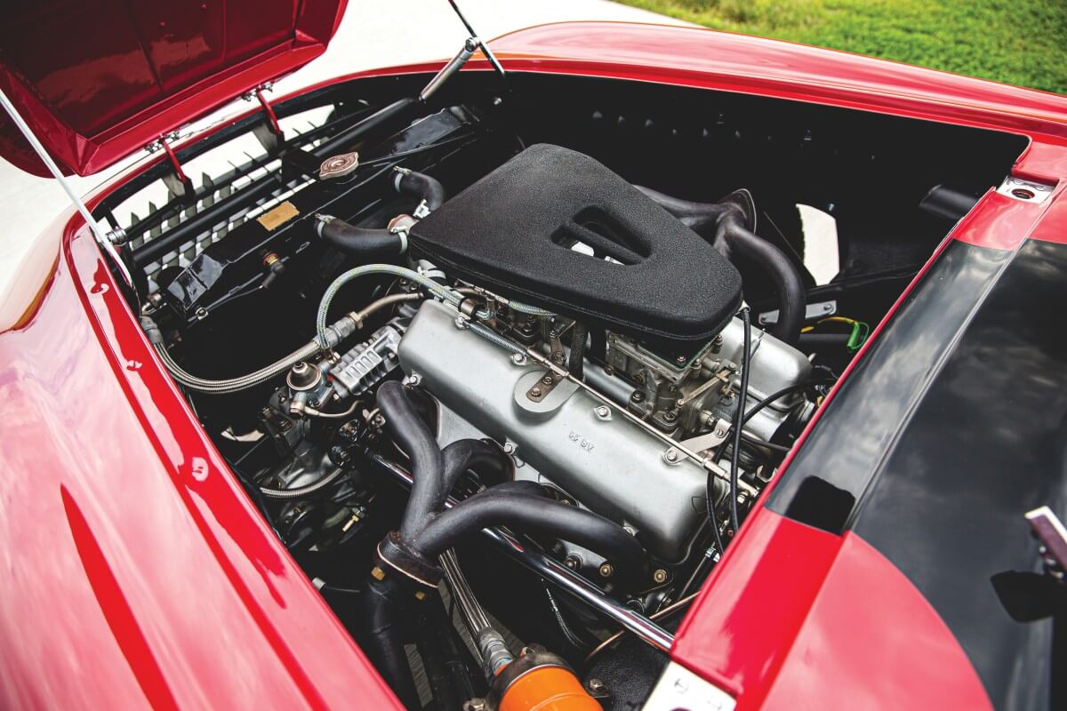 En el corazón de estos exclusivos autos se esconde un pequeño pero potente motor V-8 de 2.0L (1.996 cc), con dos carburadores dobles marca Weber, administrados por una caja de cambios de 4 velocidades, que lo hacía rodar a 190 kph; venía con suspensión independiente y frenos de tambor en las cuatro ruedas. El cárter del motor era de fino aluminio, las entradas y los puertos estaban pulidos, y los llamativos cabezales tubulares del colector de escape ‘cuatro-en-uno’ se elevaban verticalmente fuera de los cabezotes de aluminio. Inicialmente, el motor producía 105 HP a 5.600 RPM.