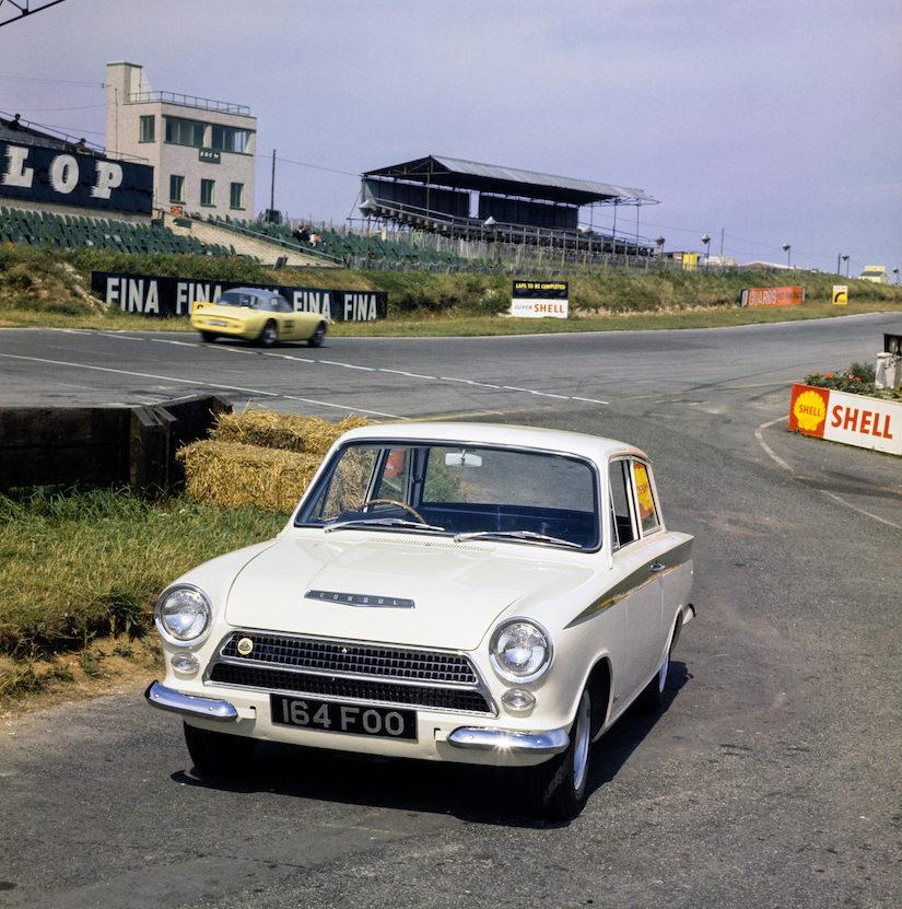 Casi al mismo tiempo que Ford ponía en circulación el Cortina, Lotus hacía lo propio con el Elan, uno de los modelos más emblemáticos de la firma británica, que, además, estaba animado por un propulsor Ford, que los ingenieros de Lotus habían retocado para dar un carácter muy diferente. Se había tomado como base el propulsor del Ford Anglia, conocido por el código 105E. Una asociación que Walter Hayes quiso aprovechar cuando, desde la central estadounidense de Ford, se le encargó desarrollar un programa para promocionar los productos de la marca en competición, durante los siguientes cinco años.