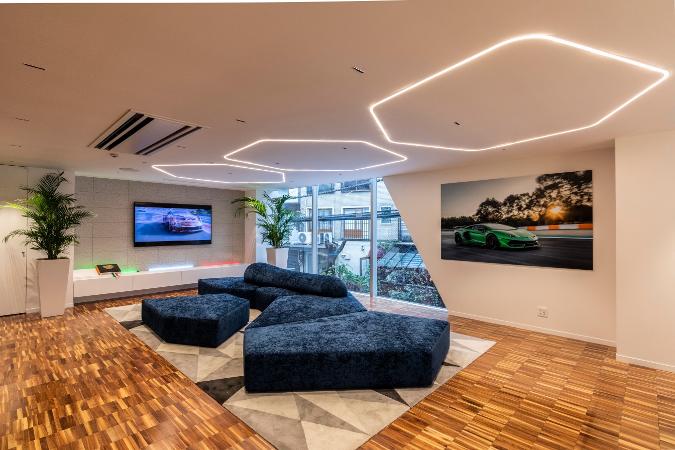 La primera planta del LOUNGE TOKYO es la primera ventana al estilo de vida Lamborghini y también el lugar para acoger a los clientes para la entrega personalizada de su nuevo Lamborghini, mientras que los pisos superiores ofrecen ambientes únicos para eventos y encuentros, ya sean por motivos de trabajo o privados, que garantizan una experiencia exclusiva y que encarna el estilo y las características del diseño de la marca Lamborghini. La Lounge abrirá sus puertas al público también para acciones especiales como exposiciones o espectáculos de arte.