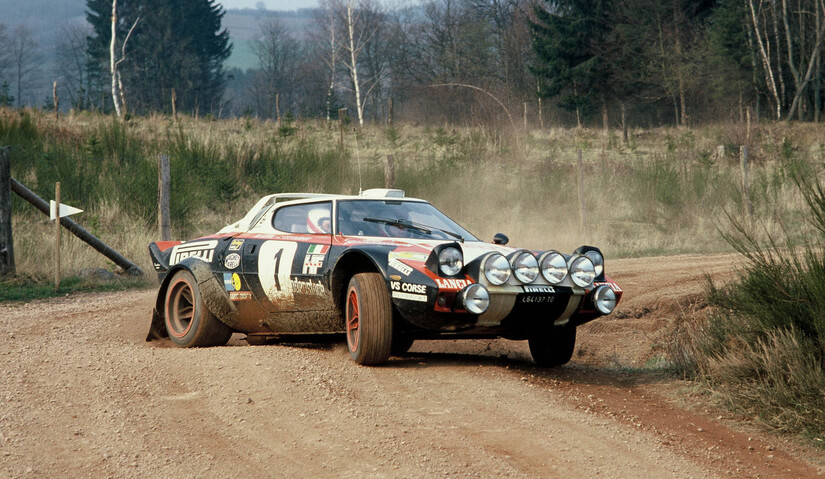 Diseño de Bertone, corazón Ferrari y fabricado por Lancia. El Stratos es uno de los automóviles más míticos del mundo de los rallyes, gracias a una imagen espectacular como pocas, a su motor V6 de origen Ferrari y a su rapidez en los tramos cronometrados de medio mundo. Y, sin embargo, solo tiene un mundial de pilotos en su haber (Sandro Munari, 1976), aunque atesora tres títulos mundiales de marcas (1974, 1975 y 1976).