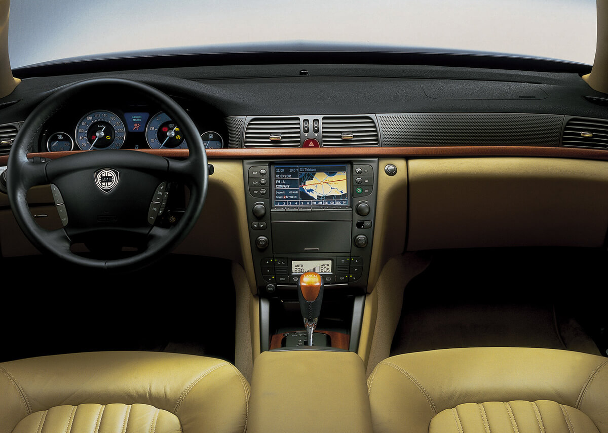 Respecto a las otras dos, valga decir que, por ejemplo, el Lancia Thesis ya tenía los pilotos formados por LED (algo muy común hoy día en coches de cierto precio y en muchos generalistas) y unos faros delanteros bi-xenón, los asientos eran calefactados, ventilados y con masaje, tenía control de velocidad por radar, acceso y arranque sin llave, freno de estacionamiento eléctrico… y una suspensión adaptativa desarrollado por Sachs llamado Skyhook. De hecho, podía montar hasta células fotovoltaicas para ventilar el interior estando el coche aparcado (iban con el techo corredizo)