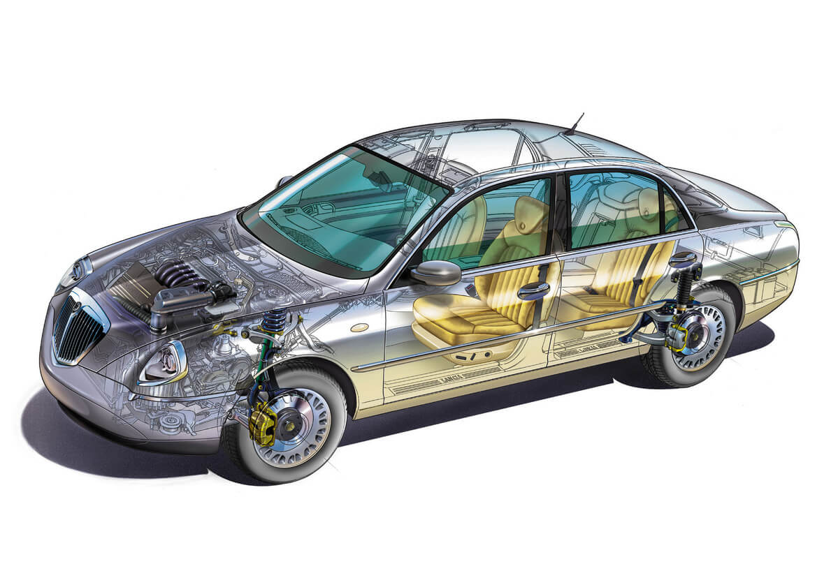 Lancia gastó en su desarrollo 405 millones de euros, con el objetivo de sustituir al Lancia Kappa y de colocar a la marca entre los gallitos del segmento E aquellos años: Audi A6, BMW Serie 5, Jaguar S-Type y Mercedes Clase E. No era un coche pequeño, ni siquiera con los estándares actuales se puede considerar pequeño un coche con 4.888 milímetros de largo, 1.830 milímetros de ancho y 1.465 milímetros de alto, con una batalla de 2.803 milímetros.
