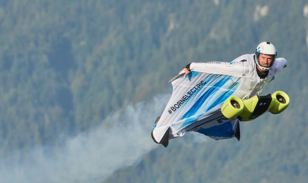 El proyecto del traje de alas electrificado de BMW i se ha llevado a cabo gracias a la aspiración de Peter Salzmann por elevar el deporte de los trajes de alas a un nuevo nivel. El austriaco, de 33 años, es instructor de paracaidismo, al tiempo que también ha hecho del salto base y del paracaidismo su profesión. Además de formación en paracaidismo y vuelo con traje de alas, también ejecuta acrobacias para cine así como actuaciones en distintos espectáculos. Cuando salta desde un acantilado o desde un avión, Salzmann utiliza la capa de tejido que se extiende entre los brazos y las piernas de su traje de alas como un parapente que le permite generar un movimiento de vuelo horizontal aprovechando la velocidad de caída y el flujo del aire. Por cada metro de descenso se pueden lograr hasta tres metros de vuelo horizontal. Los paracaidistas con traje de alas pueden alcanzar velocidades superiores a los 100 km/h.