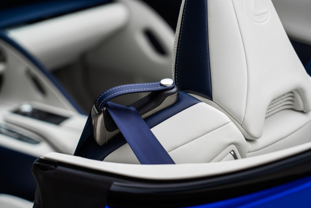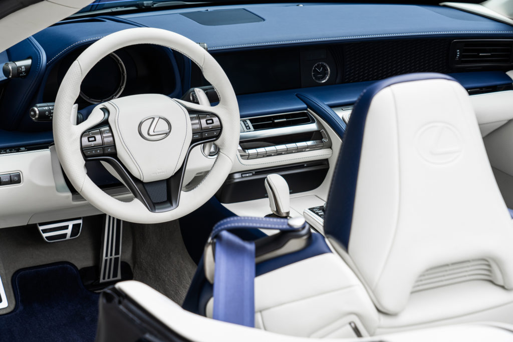 Exclusiva combinación de colores la que exhibe la nueva edición especial de lanzamiento Regata Edition del Lexus LC Cabrio . Una acertada combinación de color azul y blanco creada mediante una avanzada tecnología de pigmentación, evoca el veraniego ambiente de los puertos deportivos sobre la atractiva carrocería del descapotable japonés.