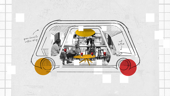 Como artista y diseñadora, Sarah Sandman, también incluida en el programa Ted Senior Fellows, pronostica un futuro en que las personas se encierren aún más en sus dispositivos digitales, y en que se pierdan gestos simples como dar paso a un peatón con la mano. Pensando en la comunidad, Sandman ha concebido un vehículo que conecte el mundo interior con el exterior, con ventanas en todas las direcciones, asientos totalmente giratorios, un sistema de altavoces para interactuar con ciclistas o peatones, e incluso un sistema de escritura con tiza para dejar mensajes o plasmar arte personalizado en la calzada. Para potenciar el tiempo de calidad con los pasajeros, el interior replicaría una acogedora cafetería con una chimenea digital, cojines y un techo similar al de un terrario. Sandman propone asimismo un modelo de propiedad colaborativa para facilitar el acceso y hacer posible un futuro más inclusivo y sustancial.