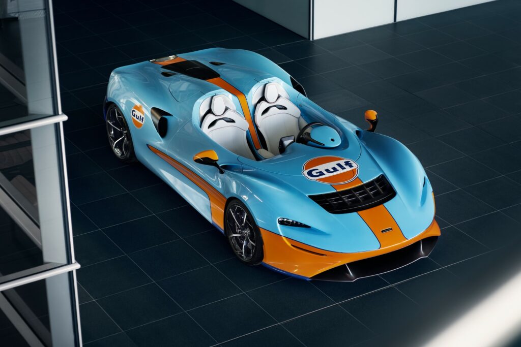 “La decoración Gulf Oil sobre el Elva es una sorprendente celebración de la historia de McLaren en las competiciones del motor en las que hemos estado tradicionalmente asociados con la petrolera norteamericana. Pero es mucho más que eso. Es una muestra más de como McLaren Special Operations puede ir más allá y ampliar los límites del “arte de lo posible” en los modelos de la marca. Proyectos como este muestran la gama cada vez más amplia de opciones de personalización que podemos ofrecer a nuestros clientes mejorando, como sucede en este caso, la autenticidad de la decoración mediante la incorporación de logotipos icónicos en el diseño”, comenta Ansar Ali, director general de operaciones especiales de McLaren.