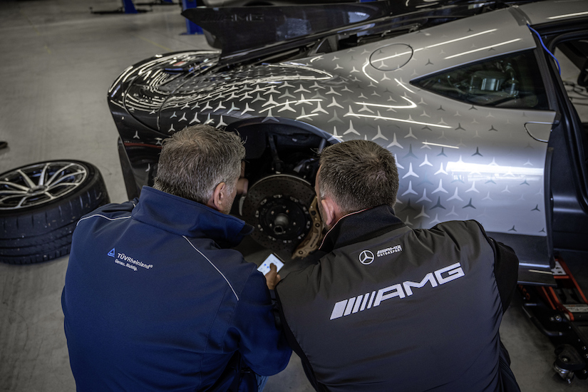 Para alcanzar el nuevo récord, Mercedes AMG trasladó dos unidades del One a las instalaciones del circuito de Nürbürgring que fueron inspeccionadas y certificadas por los ingenieros del trazado alemán y de la TÜV Rheinland (organismo similar a la ITV española) para verificar que los coches estaban en condiciones acordes a las especificaciones Nürbürgring 1927 GmbH, que son las que fijan y garantizan que se trata de vehículos de producción en serie. Las inspecciones se efectuaron en presencia de un notario, que fue quien avaló tanto el buen resultado de las mismas como el de la correcta ejecución de las vueltas que sirvieron para marcar el nuevo récord alcanzado.