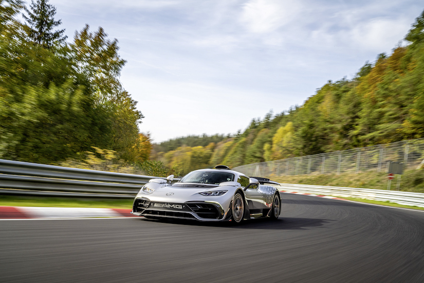 El nuevo Mercedes-AMG One un modelo de hípercoche desarrollado para circular tanto por carreteras abiertas al tráfico como sobre la pista de los circuitos de competición y que cuenta con tecnología procedente directamente de los monoplazas que el equipo de Mercedes alinea en el Campeonato del Mundo de Fórmula 1 . El tiempo marcado por el Mercedes AMG One ha sido certificado ante notario sobre la misma pista del circuito. Sus 06:35,183 minutos le sitúan como el nuevo líder de la categoría de vehículos de producción en serie matriculables para su uso en carretera, y le sitúa igualmente como el líder hasta la fecha de la categoría de los superdeportivos e hypercars.