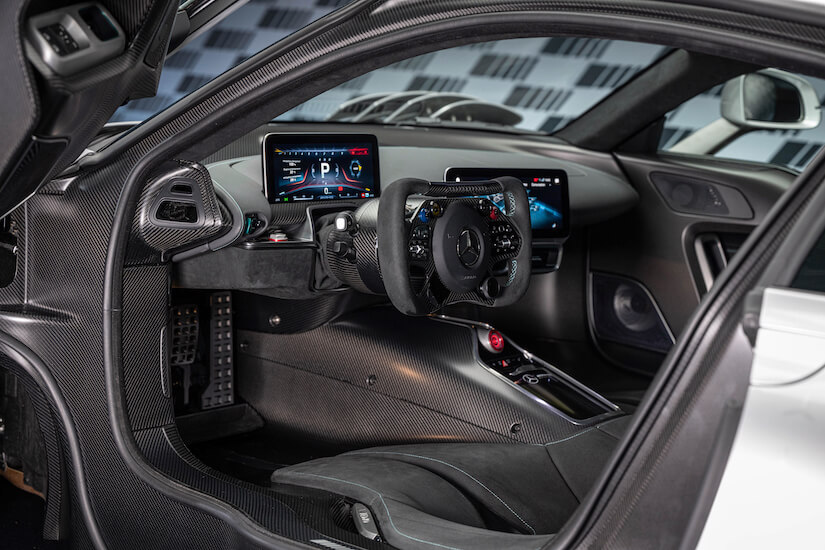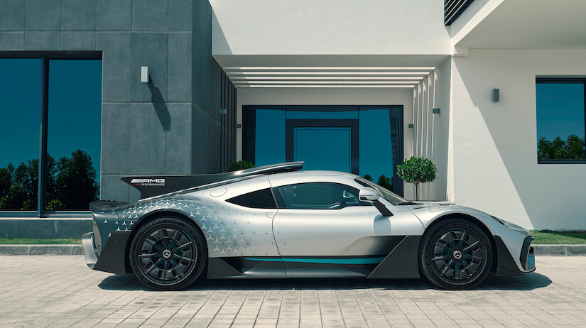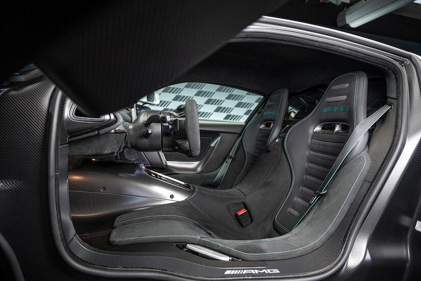 El diseño de la carrocería de fibra de carbono deja ver su inspiración en la categoría reina del deporte del motor. Pero, sobre todo, encarna un principio básico de Mercedes-AMG, según el cual la fascinación debe ir siempre unida a la funcionalidad. Cada componente cumple una función. Por ejemplo, el concepto de motor central basado en un monocasco de fibra de carbono y unidad semiportante de motor y cambio se refleja en las proporciones extremadamente musculosas con un puesto de conducción típico de competición en posición muy avanzada combinado con cajas pasarruedas de amplio volumen, cintura estrecha y zaga prolongada.