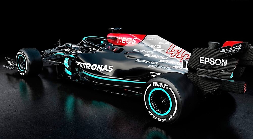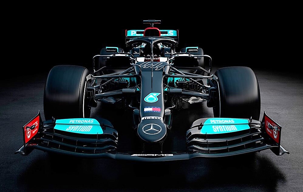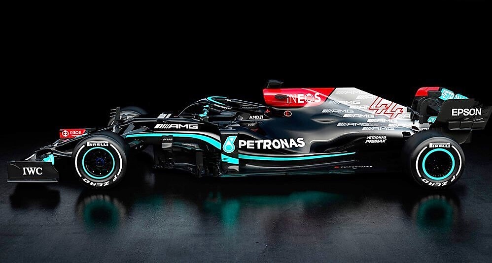 El W12 cuenta con una decoración similar a la de 2020. El color negro de su campaña contra la discriminación racial predomina sobre el plateado del cubre motor, donde se colocaron logos de AMG (la automotriz aumentará su promoción hacia su división de alto rendimiento), y sobre los detalles en verde (Petronas) y rojo (Ineos). Este último patrocinio parece tener un protagonismo un tanto mayor que en la temporada pasada. Por su parte, la estrella roja en honor a Niki Lauda ahora se ubica detrás de la cabeza del piloto.