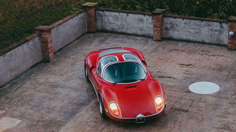 Para muchos este es el modelo más bello jamás creado por los diseñadores de la marca de Turín. Una elección ciertamente difícil dado el elevado nivel que siempre ha caracterizada a las creaciones surgidas del estudio de diseño de Alfa y de los pinceles de sus mas notables representantes. Aquel Alfa Romeo tipo 33 Stradale era todo un compendio de tecnología de competición envuelta bajo los simples paneles de su carrocería de aluminio terminada en el color rojo tradicional de la marca.