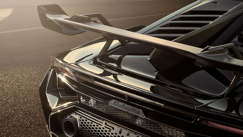 Los nuevos faldones le aportan gran parte de esa nueva imagen aún más baja y elegant e que presenta el Huracán STO. Imagen que también mejora con la adopción de unas nuevas carcasas de nuevo diseño para los retrovisores exteriores elaboradas igualmente en carbono visto o las nuevas tomas de aire del mismo material abiertas junto a las ventanas laterales traseras para aportar aire a su motor. Tomas de aire que combinan su función con las branquias de admisión abiertas sobe la persiana trasera dispuesta sobre el vano motor.