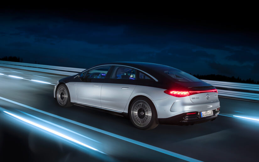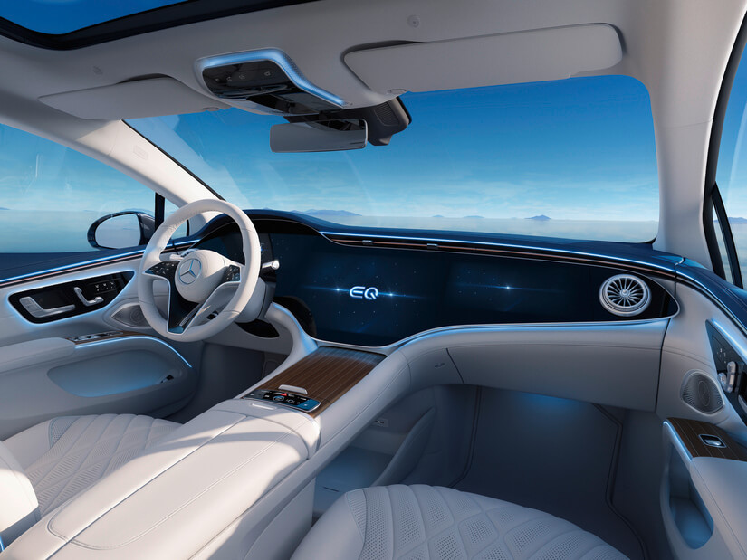 El EQS es un vehículo especialmente inteligente, dotado de un máximo de 350 sensores, en función del equipamiento. Estos elementos registran distancias, velocidad y aceleración, la luminosidad ambiental, la intensidad de la lluvia y la temperatura, determinan la ocupación de los asientos, e incluso analizan el parpadeo del conductor o el idioma en que hablan los pasajeros. Las informaciones se procesan con ayuda de unidades de control, que toman decisiones en fracciones de segundo con ayuda de algoritmos. Puede decirse que estas centralitas electrónicas son el cerebro del automóvil. El nuevo EQS puede perfeccionar sus aptitudes a medida que adquiere nuevas experiencias, pues es capaz de aprender con ayuda de técnicas de inteligencia artificial.