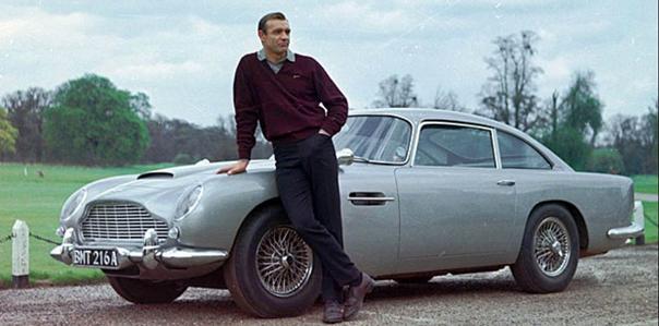 El actor Sean Connery posa frente a su Aston Martin DB5 – Modelo 1964 // Fotografía:https://www.fayerwayer.com