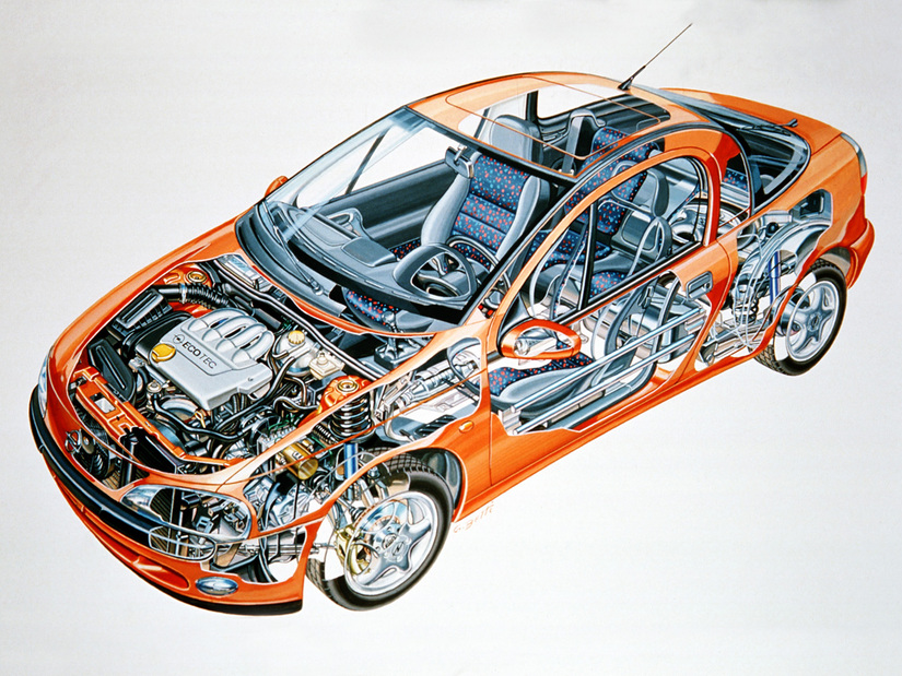Esquema de la carrocería, chasis y motor del Opel Tigra