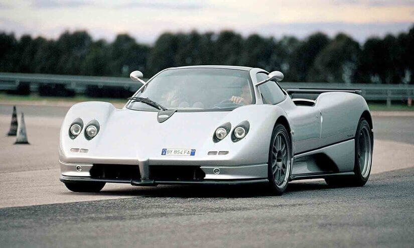 Horacio, cuando empezó con su propio proyecto automovilístico, ya se había ganado fama de ser un gran aerodinamista y también, un gran experto en materiales compuestos. Por eso, no es de extrañar que su primer deportivo contará con un chasis monocasco de fibra de carbono, una bañera fabricada con materiales compuestos que le daba una elevadísima rigidez. Pero no fue solo eso lo que llamó la atención en aquel Salón de Ginebra de 1999, lo hizo su espectacular diseño, con una cabina con forma de lágrima ligeramente más estrecha que las vías, con unos faros muy pequeños, colocados dos a dos o, sobre todo, por su trasera, con unas salidas de escape colocadas en forma de cuadro y en el centro de la zaga.